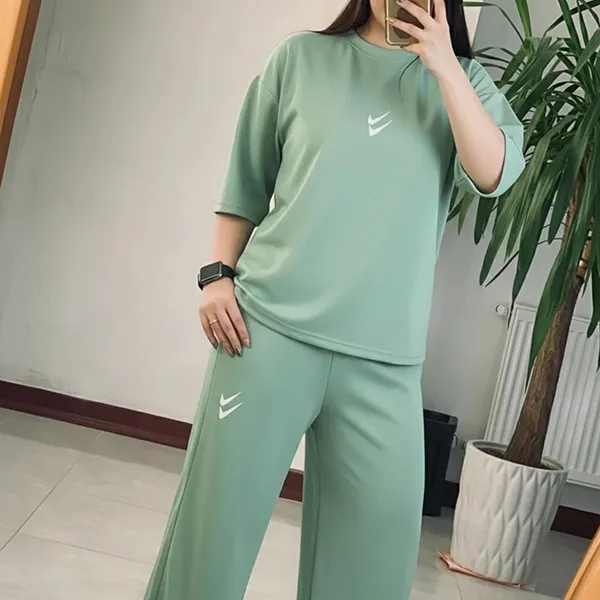 ست تیشرت شلوار مدل: دونایک جنس پارچه: گلکسی دور سینه: 128 سانتی متر قد تیشرت: 68 سانتی متر قد آستین از یقه: 45 سانتی متر قد شلوار: 105 سانتی متر سایزبندی: فری سایز مناسب سایز های 38 تا 46